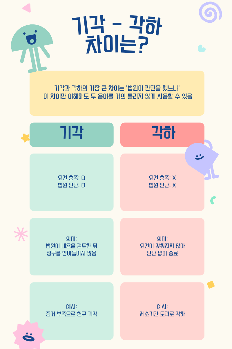 기각과 각하를 헷갈릴 일은 거의 없을 것입니다.