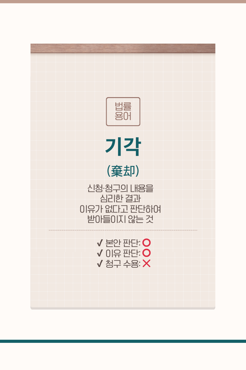 - 기각: 이유 없음 → 받아들이지 않음